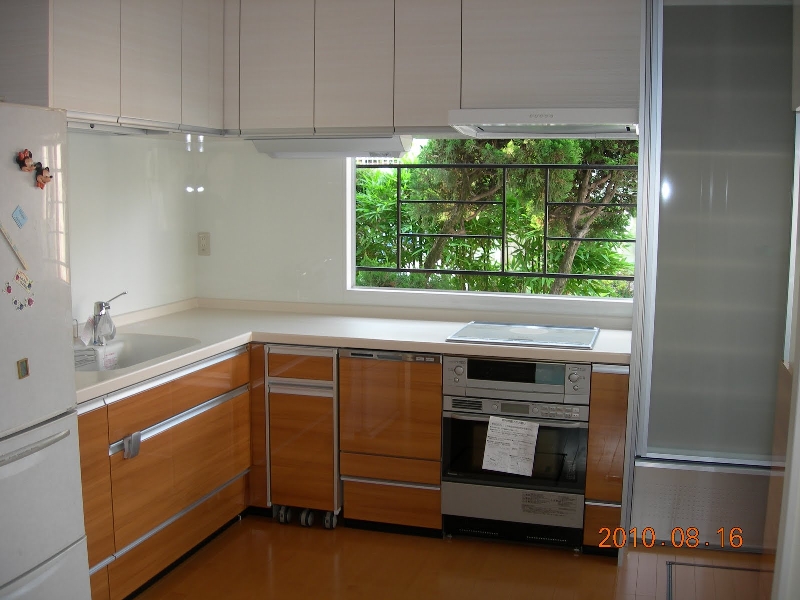 リフォーム内容 : キッチン入れ替え キッチン・リビングの床と壁の張替 玄関扉交換他